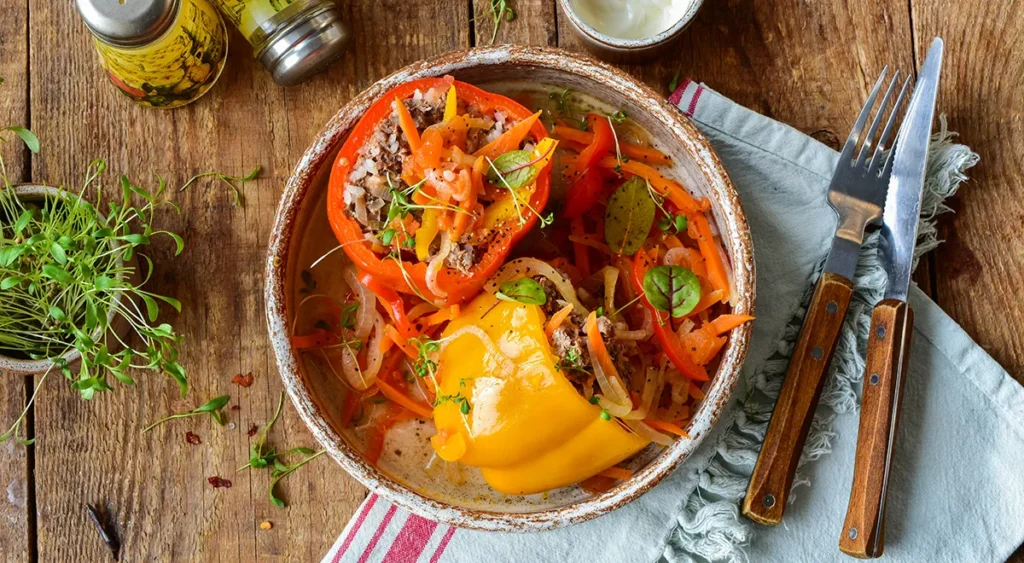 Перец фаршированный — це одна з тих страв, які з першого ж укусу дарують відчуття затишку, адже вона знайома з дитинства, водночас проста й дуже поживна, тому що поєднує овочі, ароматні спеції та ситну начинку, а ще легко готується навіть тим, хто тільки вчиться стояти біля плити.