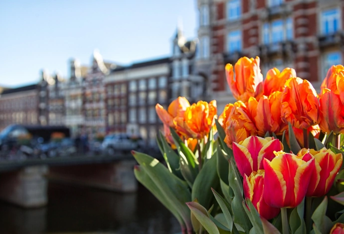 Голландіяя асоціюється з тюльпанами, адже навесні поля вкриваються яскравими квітами. Туристи приїжджають подивитися на квіткові плантації, тому цей період дуже популярний. Крім того, країна експортує мільйони цибулин тюльпанів у різні країни світу.